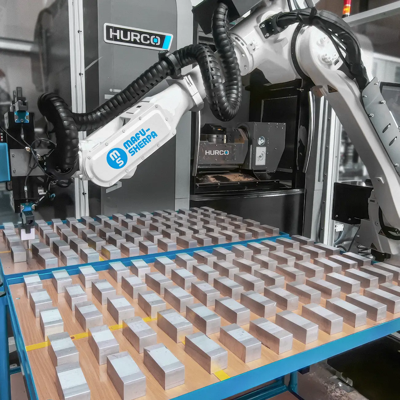 Die Robotersysteme von MAFU-SHERPA machen Ihre HURCO Fertigung produktiver, flexibler und wirtschaftlicher – von der Einzelteilfertigung bis zur Serie.